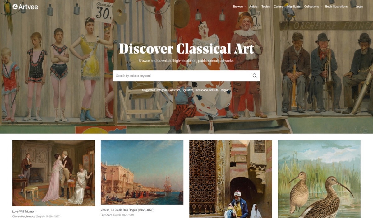 En plena saturación visual, Artvee se ha convertido en ese rincón al que acudir cuando necesitas inspiración con peso y textura (e incluso siglos de historia detrás). La plataforma reúne miles de obras de arte clásico en dominio público y las ofrece en alta resolución, listas para descargar y reutilizar sin dramas legales. Renacimiento, Barroco, grabados, ilustraciones botánicas, escenas mitológicas o estudios de manos y telas imposibles: todo convive en un archivo que funciona como una especie de Pinterest alternativo, más culto, más consciente y bastante más elegante.