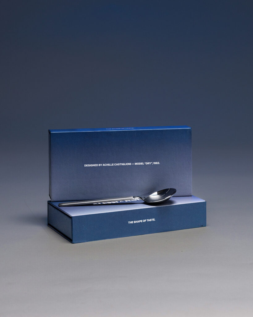El proyecto se materializa en la Tortellino Spoon, una reedición en acero de una pieza diseñada por Achille Castiglioni hace más de cuatro décadas. Una pieza pequeña pero con carácter que casa a la perfección con la esencia del tortellino. Habrá solo 100 unidades en todo el mundo, numeradas y disponibles únicamente durante el lanzamiento de Crafted Warmth. Un cubierto con carácter que eleva un gesto tan cotidiano como apetecible, sentarse a comer un delicioso plato de pasta que abriga a cualquiera en invierno.