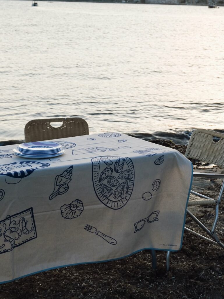 El proyecto desarrolla pequeñas colecciones de manteles, servilletas e individuales pensadas para acompañar esos momentos que todos reconocemos: comidas que se alargan, aperitivos improvisados, sobremesas que se convierten en conversación infinita. Los textiles apuestan por algodones agradables y patrones clásicos como el vichy o las rayas, con colores vivos que remiten a una estética muy mediterránea. Mesas bonitas pero sin rigidez, pensadas para usarse de verdad.