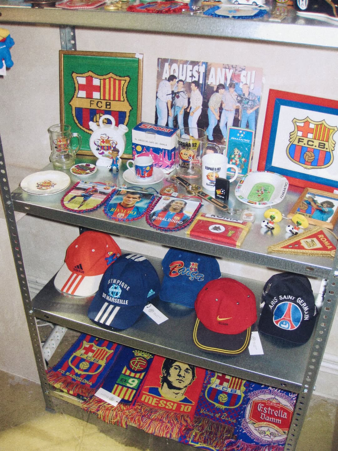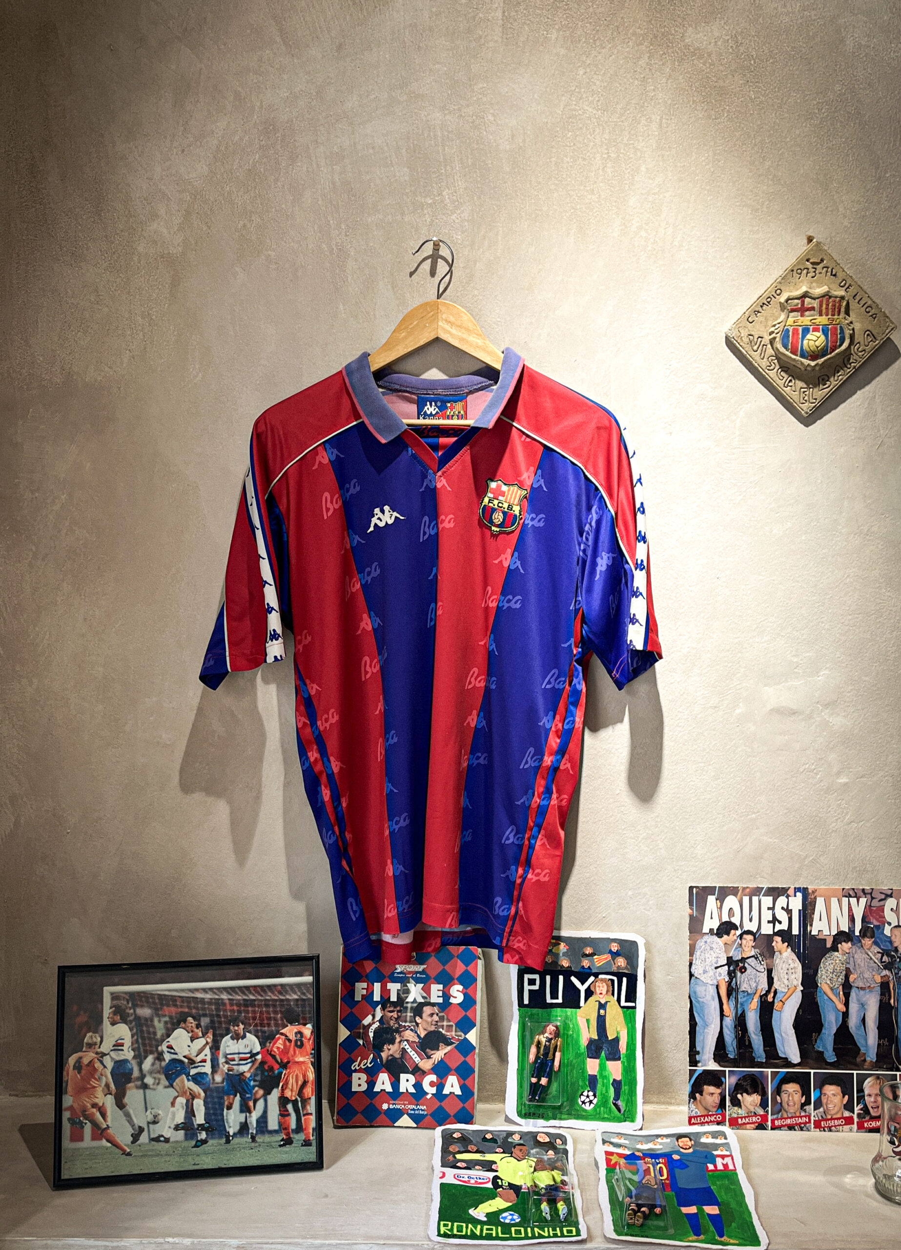 Cruzar el umbral del número 30 de la calle Pintor Fortuny es entrar en una cápsula del tiempo a escasos metros de donde Joan Gamper fundó el Barça. El nuevo espacio, ubicado en pleno corazón del Raval, hace convivir joyas originales de los años 90 y 2000 con el sportswear vintage más buscado de marcas como Umbro, Nike, Adidas, Reebok y Puma. Alejándose de esta atmósfera fría de las tiendas de deporte, RVF se viste de gala con sus reliquias más preciadas para dejar que los valores e historia atraviesen la tela y hagan sentir a los visitantes.
