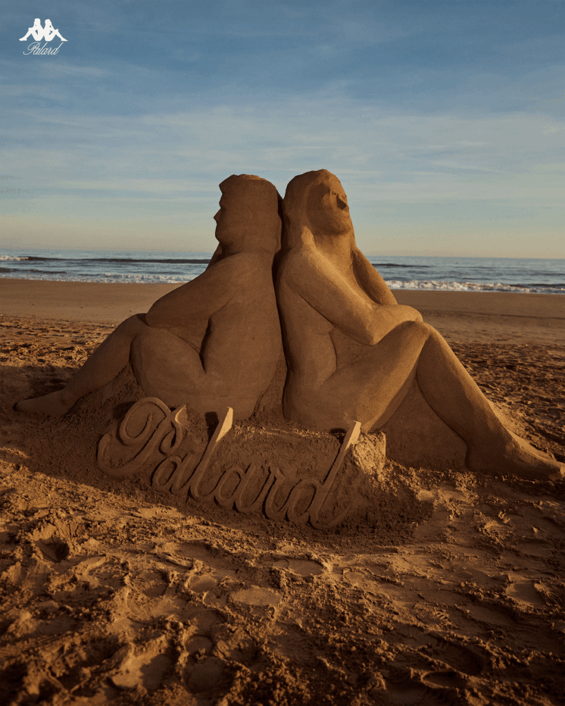 Para vivir esta colaboración in situ, las marcas han huido de los eventos convencionales, apostando por una intervención artística efímera pero poderosa: una escultura de arena de más de metro y medio de altura levantada frente al mar.