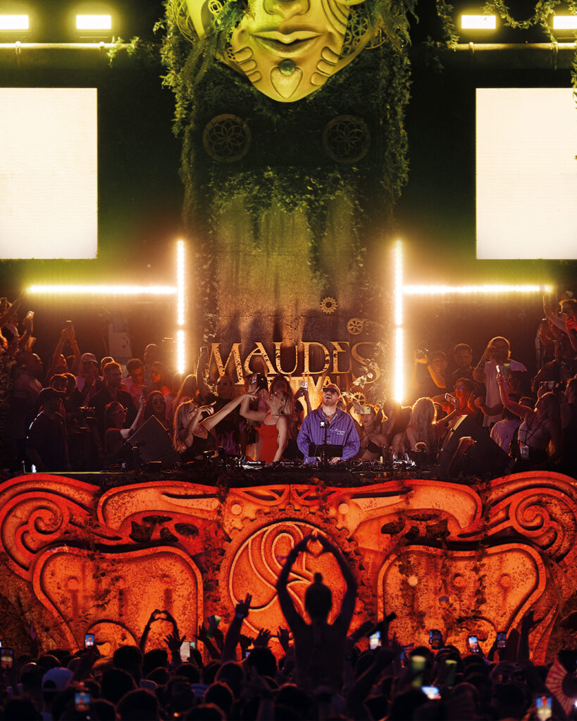 Pero entender Maudes únicamente a través de sus impecables carteles sería rascar solo la superficie. Lo que realmente distingue a este proyecto es su profunda vocación narrativa. Desde sus inicios, el festival ha trascendido la simple programación musical para construir un universo propio, un storytelling inmersivo donde el público deja de ser espectador para convertirse en ciudadano activo de un nuevo mundo. Ya sea habitando las ruinas florales de esa civilización esmeralda en Madrid o redescubriendo el mito oceánico en Canarias, cada asistente es una pieza clave de una historia viva que se cuenta a través de cuidadas escenografías, arte contemporáneo y una atmósfera diseñada al milímetro para despertar los sentidos.