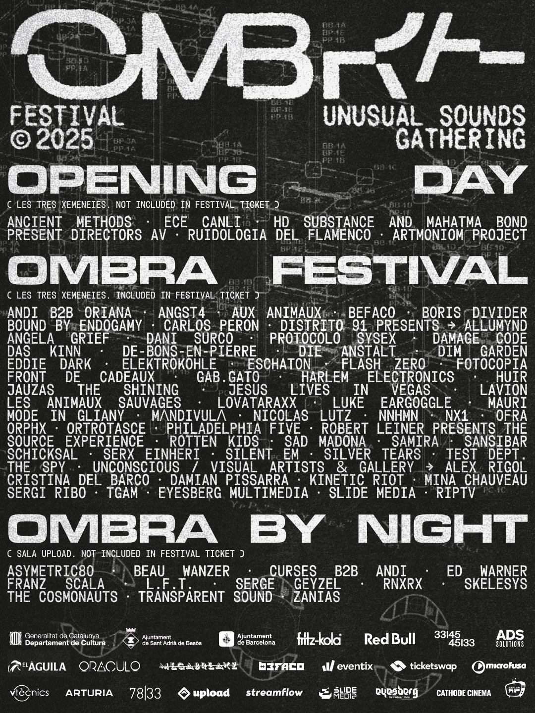 Pero eso no es todo: además de la programación normal del festival, Ombra expande su universo más allá de les Trex Xemeneies, ofreciendo fiestas nocturnas Ombra By Night en la Sala Upload, que requieren una entrada separada. En estas fiestas secundarias actuarán artistas como L.F.T., Transparent Sound y Serge Geyzel, para rubricar una edición que se postula como histórica.