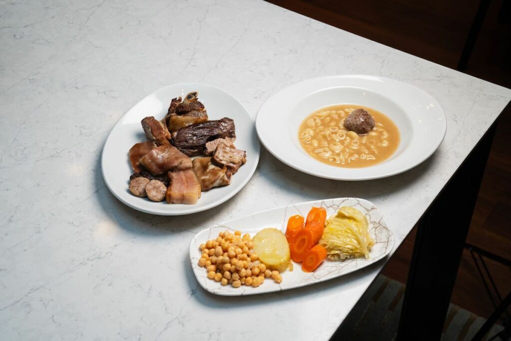 Molino de Pez mira a Madrid y recupera uno de esos platos que no admite atajos. Cada jueves vuelve su cocido madrileño, servido en tres vuelcos y con todo lo que debe tener: sopa de fideos bien profunda, garbanzos y verduras en su punto, y un desfile final de carnes donde conviven morcilla, chorizo, panceta… y algún guiño muy local como la pilota o la butifarra blanca. Tradición castiza pasada por el filtro de Barcelona, con producto impecable y ese savoir faire que Familia La Ancha lleva décadas afinando. No es solo un plato, es una experiencia completa, de mesa larga y ritmo lento, por 38 € que se amortizan cucharada a cucharada.
