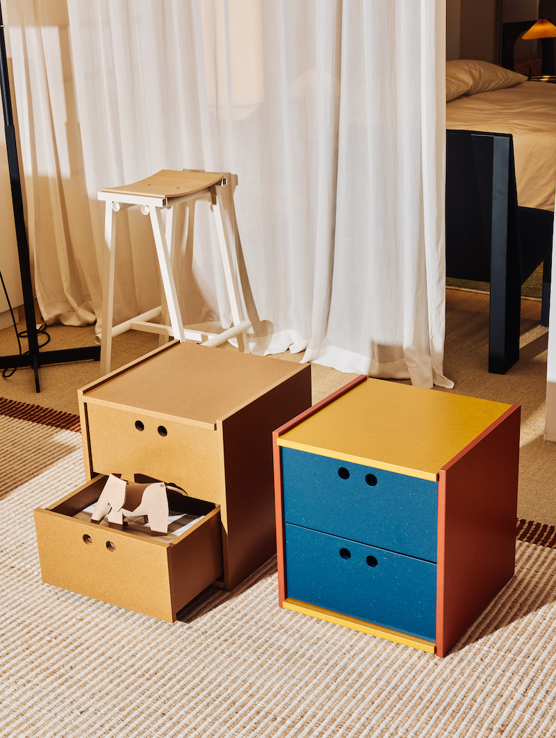 La versión original de la colección incluye mesita de noche, cajonera y aparadores, y ya es un básico infalible para el hogar. Pero la edición especial que acaba de presentar Matèria es el drop que necesitábamos. En este templo del buen gusto ubicado en la calle Rector Ubach 43, gestionado por Nina Ordeig y su equip, han lanzado una versión exclusiva. Han cogido la mesita de noche Wally y la han teñido de rojo, amarillo y azul, los colores primarios que aquí acentúan su geometría sin disfrazar la nobleza del material ni de su concepto. Es un toque vibrante que encaja perfectamente en la filosofía de la tienda: piezas con identidad, con el carácter para integrar en lo doméstico ese punto sofisticado y especial.