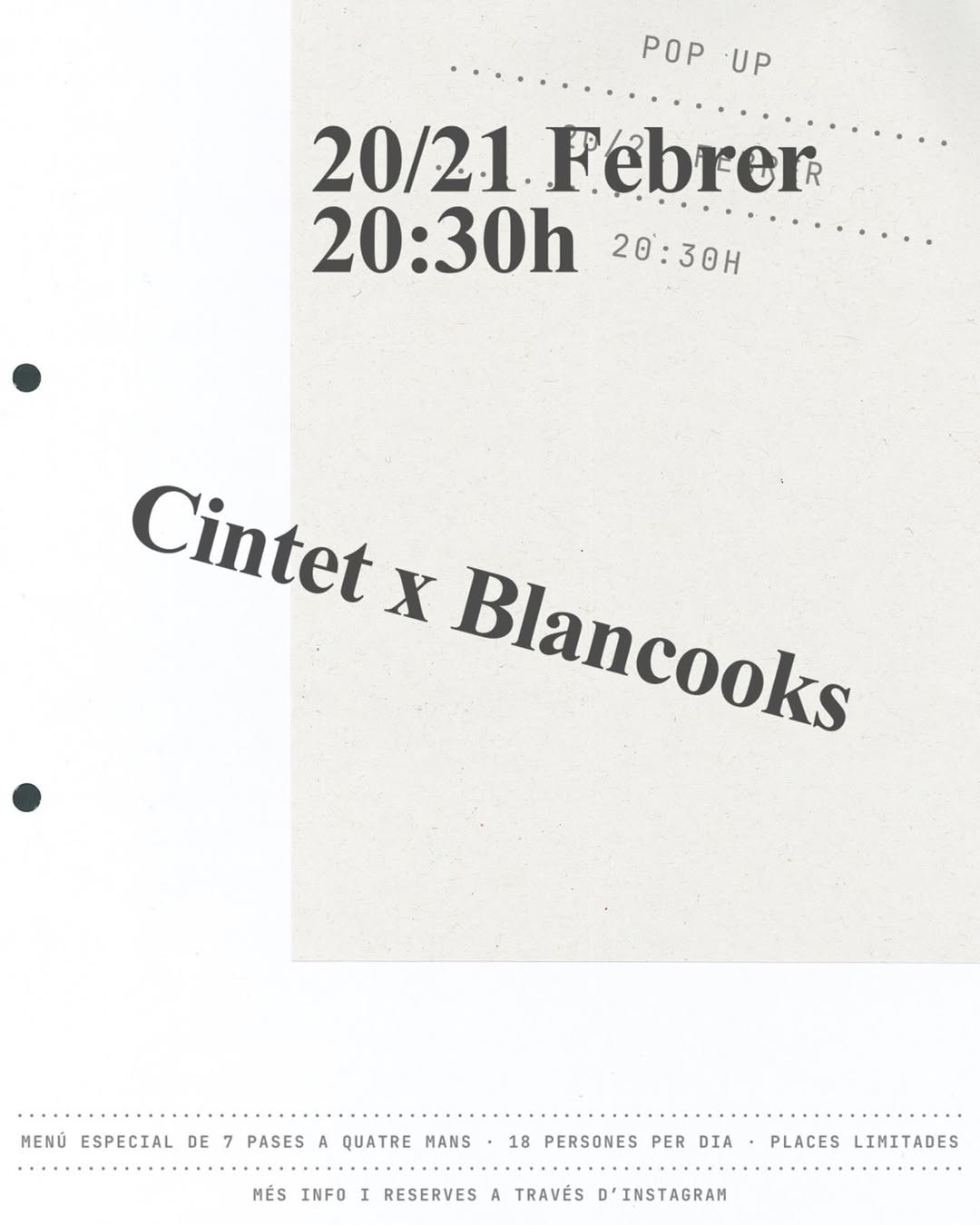 No todas las pop up que te traemos iban a ser de moda. Este finde la cosa va de disfrutar y dejarse llevar por un menú degustación en un formato íntimo, de la mano de dos creadores que seguro que tienes fichados y que, probablemente, ya te han salido más de una vez en el feed. Cintet y Blancooks se unen para cocinar juntos un sopar a quatre mans especialmente diseñado para este encuentro efímero. Y eso, ya de entrada, merece atención. El plan se concreta en un menú degustación de siete pases, pensado al detalle y servido solo a 18 comensales por día. Mesa larga, cocina abierta, para ver toda la magia en directo, espacio íntimo y ese ambiente que invita a sentarse, bajar el ritmo, compartir, disfrutar y dejar que te cuiden.